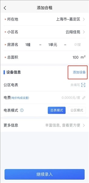 房源管理--整租--填写基本信息--填写设备信息--填写更多信息