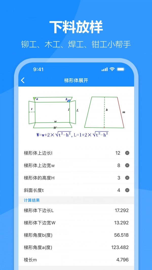 解决放样、下料等计算问题,支持自定义创建编辑公式
